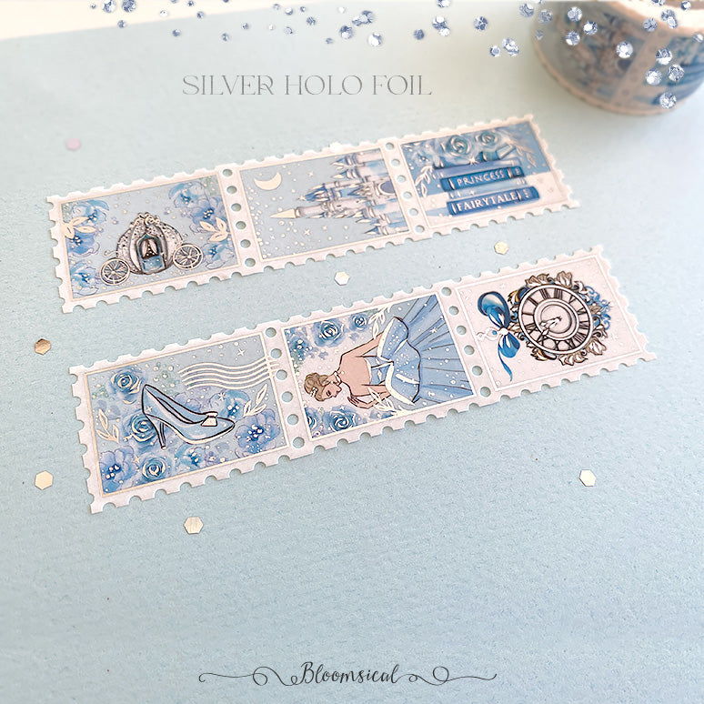 ♡ 1 Perforated Stamp Washi Tape, size 25mm x 5m in either Silver Holo or Gold Foil