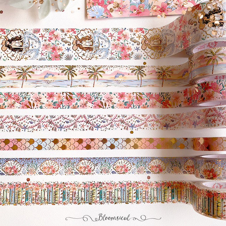 ♡ 1 Country Mermaids Washi Tape Warm Gold Foil accents, Extra Wide Size, 30mm x 10m