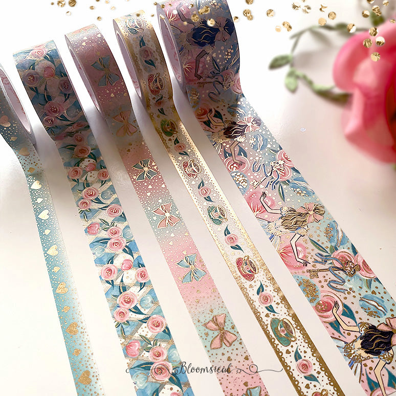 ♡ Alice Girl Washi Tape Gold Foil accents, Extra Wide Size, 30mm x 10m
