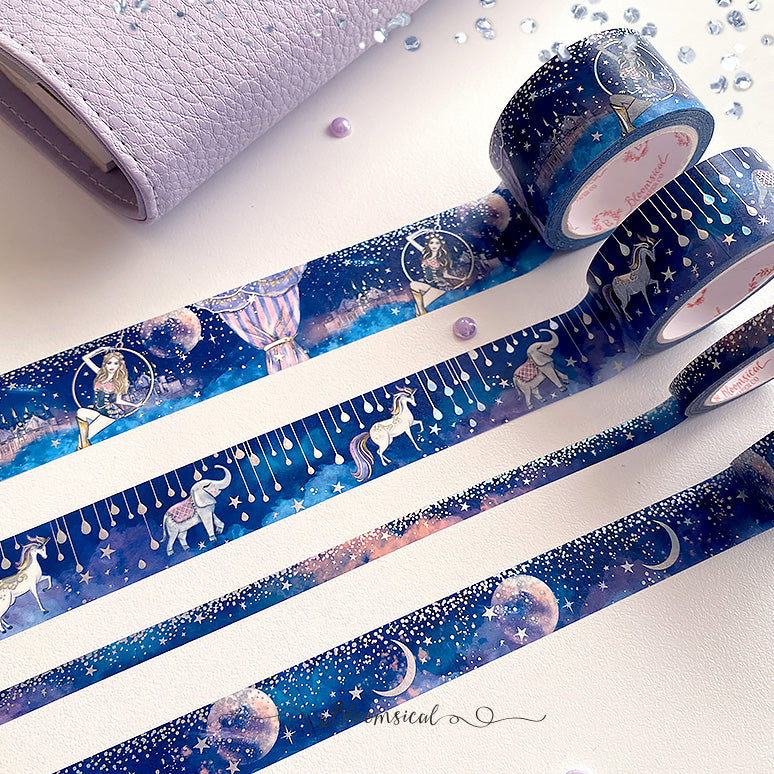 ♡ Unicorns & Elephants Washi Tape, Silver Holo Foil Foil accents, Large Size, 20mm x 10m