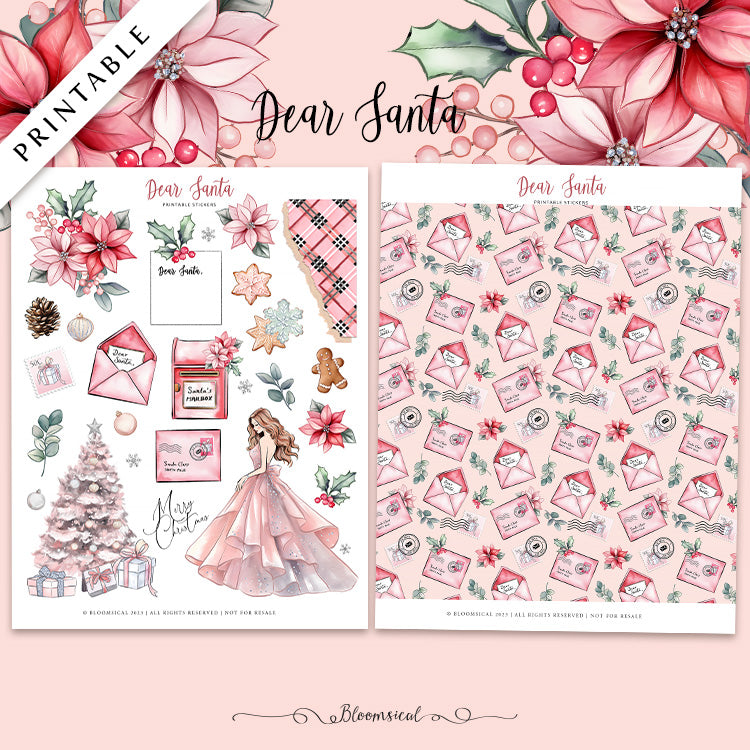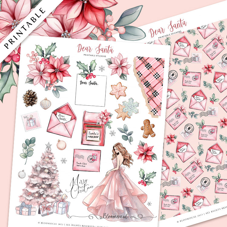 Dear Santa PRINTABLE Stickers for Journaling & Planner Decoration