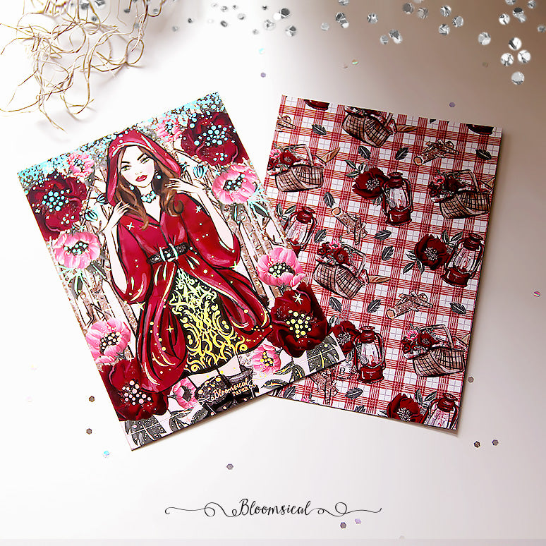 ♡ 1 double sided postcard with Silver Holo Foil accents on 1 side