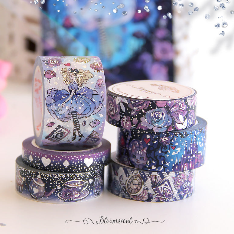 ♡ 1 Alice Washi Tape Silver Holo foil accents, Extra Wide Size, 30mm x 10m