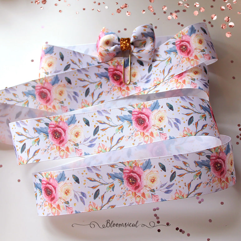 Bloomsical's Exclusive Printed Ribbon sold by yard. Paper Bow Clip NOT included.